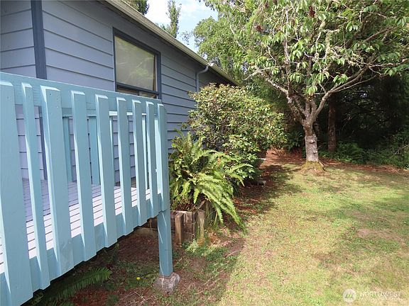 This is a nice home that has a short walk to the beach and has great sun sets and a partial ocean view from the deck and dining room and it would be a good place to have fun and relax! The home has two large bedrooms and a good sized 3/4 bathroom with a skylight and a large walk-in shower. And there are the living room, dining, and family room and kitchen and they are covered with the cathedral ceilings! There is a large deck off the kitchen with access to the laundry room. The one-story custom-built home with an attached spacious garage has been recently painted and is fully furnished and ready for you to enjoy! The property is a double lot that is partially treed and has room to add an outbuilding or shop if wanted!
