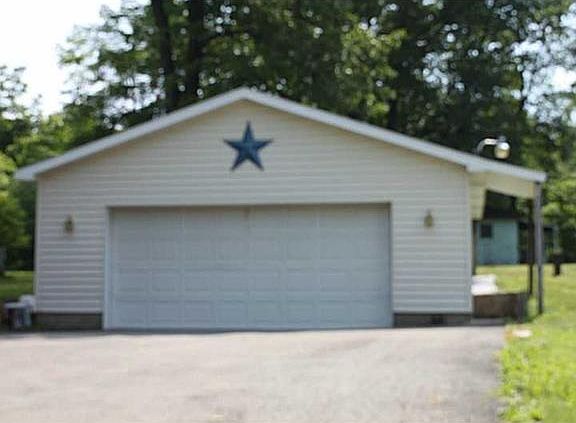 Mobile home on country acre with 2 car detached garage and paved drive. Enjoy watching wildlife off the private, covered back porch. Surrounded by mature trees, this is truly a park like setting! This nearly new home has been lovingly cared for, and well maintained. Extra storage available in the garage.