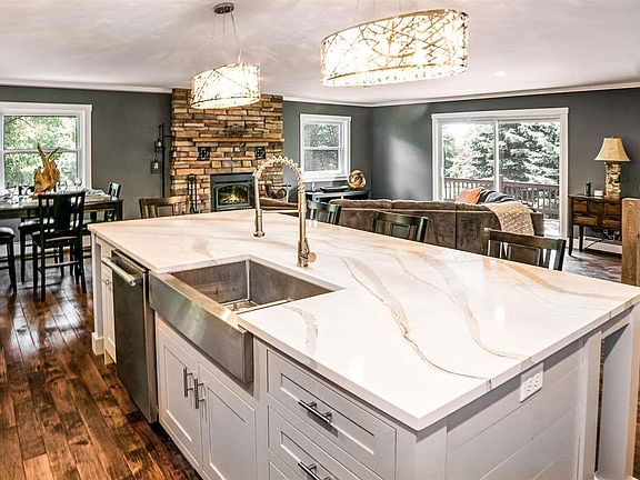 This beautifully updated home is nestled in a quiet, over 2-acre country setting, is close to all area attractions and conveniences that make northern Michigan so special. You'll fall in love with this 4-bedroom, 2.5-bathroom home the second you step through the front door. The focal point of the home is centered around an elaborately updated dream kitchen including a high end Bertazonni stove with dual ovens adorned with a breathtaking zinc hood fan, high quality cabinets, quartz countertops, brand new appliances including a spacious duel Frigidaire refrigerator/freezer and large kitchen island great for entertaining. The kitchen opens to a spacious dining and living room accented by new hickory wood flooring, wood fireplace with attractive stone surround, all of which create a warm, classy high-end feel. On the upper level the hickory wood floors continue including the master bedroom with private bath, two additional bedrooms and guest bath. Ship-lap wall accents lead you downstairs to an additional bedroom, half bath, laundry and tranquil family room complete with a hot tub and sitting area with large windows bringing in the beauty and light of the outdoors. Outside you will find a gardening area perfect for planting your spices and summer vegetables, an enchanting walkway through a wooded setting, attached two-car garage with workshop area, paved circular driveway and two level storage shed great for storing all of your toys or kids playhouse. All of this in a quaint and quiet setting and just minutes from Crystal Lake, Lake Michigan, golfing, bike trails, skiing and everything the Beulah and Frankfort communities have to offer. New base trim, casing and doors in the upper level would complete the recent upgrade and await your finishing touches.