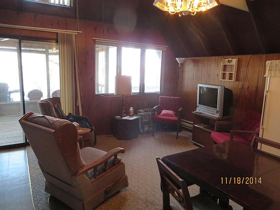 Cute A-frame w/walkout balcony from 2nd floor overlooking lake.10x14 screen porch & 8x12 shed.Great location.Double roof.New shingles 2011.Very clean.Most furnishings included.Dock,pontoon lift & hot tub(as is condition) included-no pontoon.Rural water,septic,& Drainfield.Could be made into year round easily.Privately owned lot!