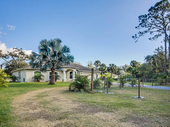 PRICE ADJUSTED! FULLY REMODELED, UPGRADED and well maintained home on 1.36 acres of private land adorned w/ Areca & Coconut Palms, Pygmy Date trees & surrounded by a permitted livestock fence. Open Floor Plan w/ French Doors opening to paver lanai and patio. Newer Whirlpool appliances, impact resistant windows & doors, newly installed countertops, porcelain tiles throughout. Master bedroom opens to patio, 2 new vanities and custom bathroom. Bathrooms have new tiled showers, vanities, and American Standard hi-rise toilets. Exterior LED lights, Interior LED or CFL daylight. 40-Gal natural gas water heater, regular pest prevention keeps the home free of bugs and pests. Newly painted inside and out. NEW SHALLOW WELL drilled to 28' with Gould 1.5HP pump. Septic regularly cleaned.