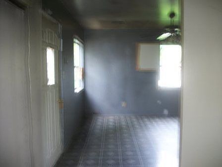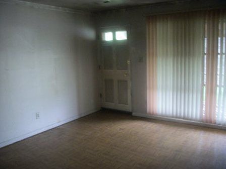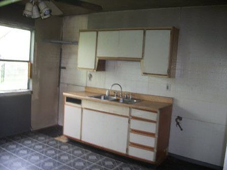 Exterior Features: Exterior: This is a 3BR/1BA single family home with decent curb appeal. Siding: Tan in color with white trim, fair condition. Windows: Intact. Soffits and Eaves: Intact, fair condition but looks to need some work. Patio/Porch: Front open porch, looks to be in fair - poor condition. Roof: Asphalt shingle, fair condition and most likely will need a little work as well. Driveway: Yes, concrete. Yard: Looks in decent shape, has a shed in the rear of the home. Interior Features: Interior: The interior of the home looks to be in overall fair condition, there are a couple cosmetic issues, but doesn't look to be any major structural problems. Living Room: Is in fair condition, has wood tile style flooring, white walls, and white trim. Dining Room: Styled much in the same way as the kitchen, has the same linoleum flooring and white walls. Kitchen: Has a couple cosmetic issues, but does have cabinets and sink installed. No appliances. Bathroom: Is complete with toilet, sink and tub/shower, has linoleum flooring. Bedroom: All bedrooms look to be in fair condition and could use a little work to the walls. (1) Has blue walls, and linoleum flooring. (2) Has gray walls, and linoleum flooring. (3) Has wood panel walls that looks to need some work, and linoleum flooring. Basement: None. Mechanics: HVAC, others are unknown. Garage: None.