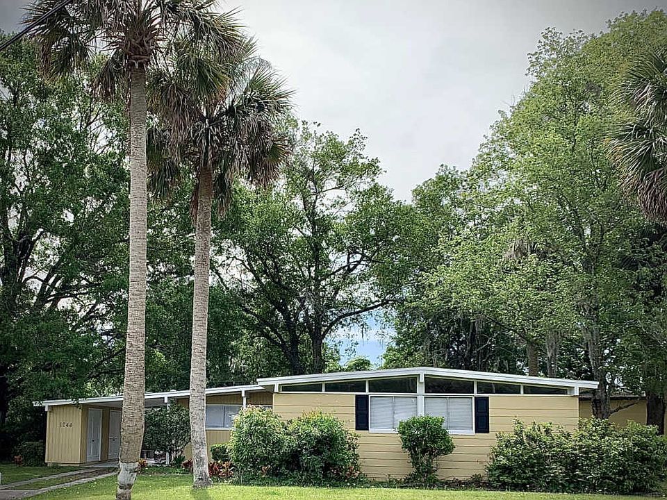 This fantastic remodeled Mid-Century-Modern home has lots of open airy rooms & windows letting in tons of gorgeous natural light. It is freshly painted in neutral colors, has closets galore & tons of character. Open floor plan with a large eat-in kitchen plus an open dining room/living room combo & gorgeous den all with new driftwood laminate flooring. The 3 bedrooms are carpeted & have large closets. The master bedroom has a huge walk-in closet. 1 of the guest rooms even has a Murphy bed to maximize space! The breezeway/carport area is perfect to use as a patio or to park a car. Enormous laundry/utility/storage room under breezeway makes for the perfect laundry room & workshop! There's deck out back with a private backyard. The front & side yards are big & tropical. Welcome Home!