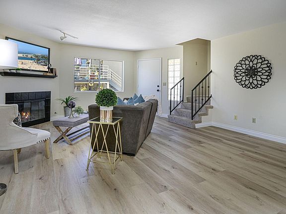 Contemporary Coastal Living - A rewarding escape peacefully situated in the heart of Carlsbad Village! Rare opportunity to live in the coveted gated community of Laguna Terrace. Boasting an array of sleek finishes and a thoughtful open layout, this charming, fully renovated beach getaway feels like a single-family home w/ walk-up entry and privately secured gated garage entrance. Enter this light and bright home on gorgeous hardwood floors into your spacious living room w/ vaulted ceilings accentuating the open layout, an elegant fireplace & large windows allowing the natural light to flood in! Open to the kitchen & living room, the light-filled dining room w/ sliding glass doors invite you to the serene backyard patio creating an ideal place for entertaining family & friends. Main-level upgraded half bath. The stairway leads you to the generously sized master suite w/ posh carpet, large windows, oversized closet & upgraded master BA w/ walk-in shower & skylight. Upstairs complete w/ newer plush carpet, secondary guest BR w/ upgraded ensuite BA & full sized laundry closet. All three BAs feature all new tiling, flooring, toilet, windows, air conditioner, heater, cabinetry & lighting. Additional storage room off patio. Quiet & well maintained 22 unit complex offers the perfect blend of location, luxury and lifestyle. Secure, underground gated parking w/ 2 parking spaces. Incredible opportunity! Short stroll to Carlsbad Village, Carlsbad State Beach, Buena Vista Lagoon, fine dining, boutique shopping, quaint coffee shops, and so much more! Owner pays for Water and Trash. Renter pays for gas and electric. No smoking inside the townhome, allowed to smoke on outside patio. 2 Pets are allowed with a pet deposit of $300 to cover any necessary cleaning after vacant which will be showed through the cleaning company.