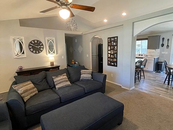 Darling one-level, three bedrooms and two bath home with 1,280 square feet of living space. Light bright and open great room floor plan with vaulted ceilings. Spacious and inviting living room with gas fireplace. Kitchen with large built-in pantry and eat-bar. The dining room shares tile floors with the kitchen and has a sliding door that leads to a patio outside. Master bedroom suite with walk-in closet and en suite bath. Lovely back yard with manicured lawn and cute front porch area.