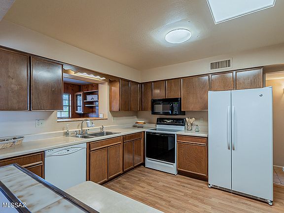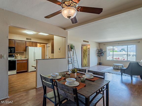 * Light, bright and waiting for you to move right in! This 2 bedroom plus a den/enclosed Arizona room, 2 bathroom home located in El Dorado Townhomes boasts 1,591 sq ft and sits in a very functional floorplan. Ample storage through provides the room for any hobby plus 2 car garage and rear yard storage unit. Walk in through the custom, cactus accented iron screen door where you'll be greeted with a picture window showcasing the gorgeous Catalina Mountain view. Second bedroom has built in Murphy bed with additional storage, master suit has huge walk-in closet and den has built in book cases/buffet. This home cannot be beat when it comes to storage! Beautiful community features pool, club house and the friendliest neighbors around. Come fast before this gem gets going, going, GONE!