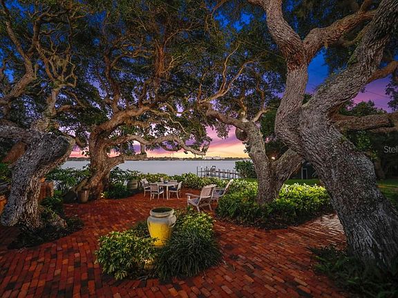 The Ultimate escape on the Gulf of Mexico in Sarasota, Florida... Imagine Quarantining with your loved ones in this gated, Bayfront Compound Estate with plenty of room for Social Distancing and located on the private north end of the island of Casey Key with deeded access to your private beach. Here you will find the main house with 5 bedrooms, 5 full baths and powder room, an ensuite guest house, and a separate bunk house with private bath, offering nearly 7000 square feet of charming living space. The property is ideally situated on 1.2 acres on the ICW complete with a 24-foot boathouse, and a separate dock accommodating a 45-foot boat. The stately oaks, palms and mature landscaping throughout offer serenity and peacefulness. With 3600 square feet of outdoor living space including an outdoor kitchen and dining area, two second story decks and porch overlooking magnificent sunrises and sunsets that you will never tire of watching. Water spaces within the estate include a spacious walled heated pool and screened courtyard with fountains and varied Florida flora specimens. Built in 1937 and one of the oldest and lovingly well maintained homes on the Key, it is reminiscent of Casey Key when vacation cottages were built for entertaining in harmony with the naturalness of the Island environment.
