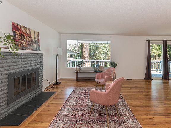 So many possibilities with 5 bedrooms and 2.5 baths! Beautiful home with an updated kitchen and baths -kitchen has SS appliances, upscale gas stove and quartz counters. Opens to the living room with a cozy gas fireplace and an entrance to the private, wooded backyard. Real hardwood on main floor. Wood fireplace in lower level. Large downstairs with extra bedrooms and huge family room. Parklike backyard with beautiful firs, large deck and fire pit for outdoor fun!