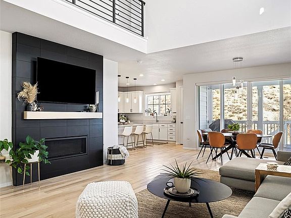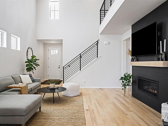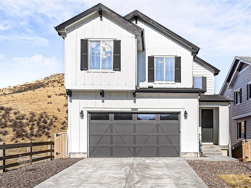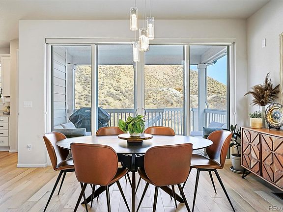 Built in 2022, this residence has been meticulously cared for and features numerous design upgrades. Maple engineered hardwood floors add warmth to the main level, where a two-story great room with a remotely-operable gas fireplace captures an inviting allure. An open-concept dining and kitchen area offers easy entertaining capabilities with a Bosch fridge, quartz countertops and access to the covered deck with hillside + Castle Rock views. The main-level study is tucked behind French doors for peaceful work-from-home days and wildlife sightings. An upper-level corridor peers down into the great room and meanders into a primary suite tucked beneath a tray ceiling. Stunning views surround this space for rejuvenating bliss complemented by an en-suite bathroom with a massive rainfall shower, terracotta-colored concrete hex tiles and a walk-in closet. The walkout basement offers a flex space, two separate unfinished areas, additional bedroom, bathroom and easy access to the backyard — the latter of which showcases new sod, a wood deck with a gas line and stunning views of Castle Rock.