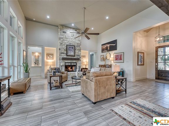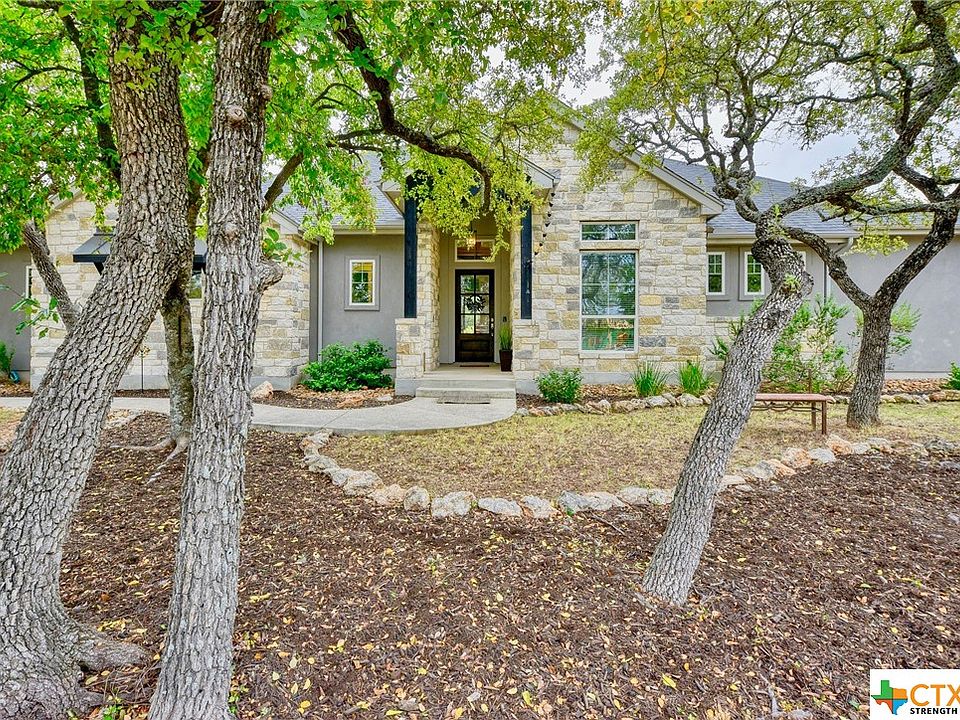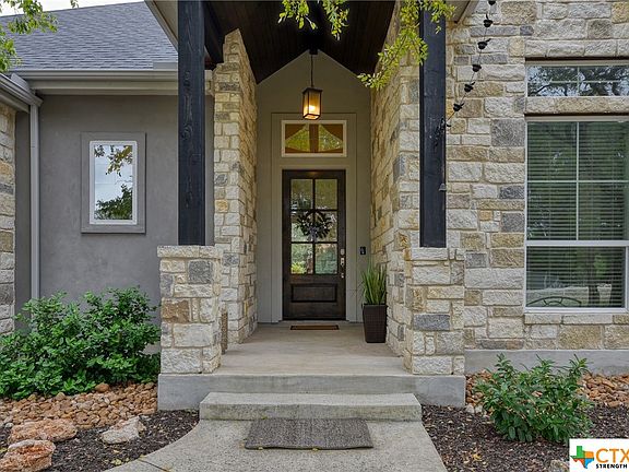 Hill country living at it’s FINEST! This STUNNING custom home sits on a tree filled acre lot in the highly desirable The Crossing at Spring Creek in Spring Branch. This home boasts 4 bedrooms, 3 full baths, 14 ft ceilings, an open floor plan with natural views, and an impressive floor to ceiling stone fireplace. The chef’s deluxe kitchen includes a 5-burner gas cooktop, leathered granite countertops, custom cabinets, and a large island. Primary bedroom has an impressive tray ceiling and a spacious master bathroom. Bedrooms 2 & 3 are separated by a J & J bathroom, and bedroom 4 can be used as a home office. Enjoy beautiful views on the back patio with NEW automated custom-built screens with remote control ease. A custom designed high fence surrounds the property and the oversized garage has a new epoxy painted floor! This community has a neighborhood park just down the street featuring a pool, pavilion, sports courts, and wooded trails for walking. THIS FABULOUS HOME IS A MUST SEE!!