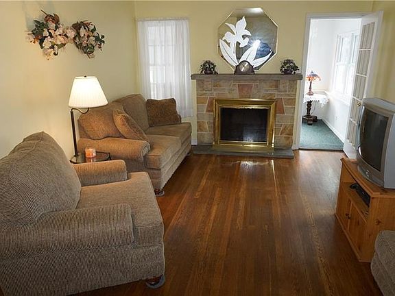 Move-In Condition! Updated Kitchen, beautiful hardwood flooring, log-burning fireplace in the Living Rom, newer windows, 1st floor Den, one bath with a soaking tub, the other with a walk-in shower; Finished game room, "Park-like" lot and located along the bus line! HSA Home Warranty!