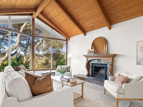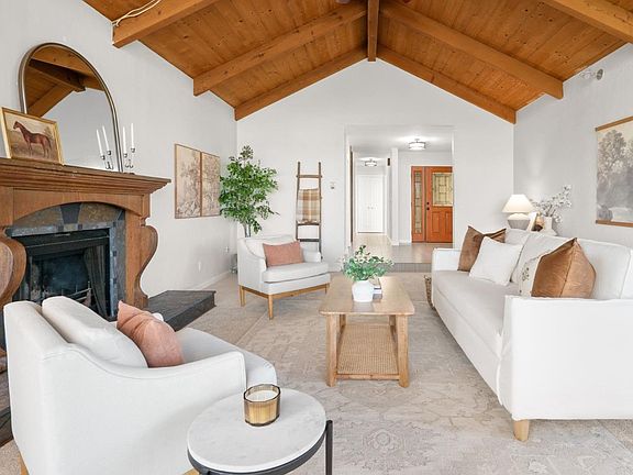 Perched atop a scenic hill in the heart of Pleasant Valley, this peaceful and private retreat offers 2,949 square feet of thoughtfully designed living space on an expansive 1.36-acre lot. Surrounded by nature and sweeping views, the home is ideal for everyday living and entertaining. Inside, youll find four spacious bedrooms and three full baths, providing comfort and flexibility for family and guests. The updated kitchen is a chefs dream, featuring granite countertops, an oversized island with sink, built-in oven and range, and a wine refrigerator. The open-concept dining area flows into the inviting family room, where vaulted, open-beam ceilings and a cozy fireplace create warmth and character. The primary suite serves as a serene retreat with a generous walk-in closet and beautiful outlooks. Step outside to one of three expansive decks to enjoy panoramic views of the valley and surrounding trees, whether relaxing in the hot tub, grilling with friends, or simply taking in the peaceful setting. Additional highlights include a large, flat outdoor area, fenced garden with chicken coop, ample RV or boat parking, and extra guest parking for entertaining. Every window frames a picturesque view, reinforcing the homes sanctuary feel. A full-house Generac generator is also included.