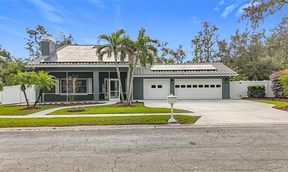 Here is your opportunity to own this exquisite 4-bedroom, 3-bath home, complete with office has it all. Upon entering, you are welcomed by a bright living room with vaulted ceilings. The numerous updates are a buyer's dream! ELECTRIC BILL $30/MONTH! IN 2018, $58k OF SOLAR PANELS PURCHASED TO GENERATE ALL THE ENERGY FOR THE ENTIRE HOME! In 2021- complete kitchen remodel including: stainless steel appliances, white cabinets galore with soft close, recessed lighting, a large granite counter for entertaining and gorgeous plank tile throughout the entire downstairs. 2021-the Florida room was remodeled with shiplap walls, whitewashed ceiling and mini split heating and cooling installed. Remote control shades compliment this space for privacy. This is the favorite room of the home overlooking the professionally landscaped backyard that surrounds the heated saltwater pool and entertainment spaces. So much room! The first floor has a primary suite where the primary bath was just remodeled with double vanity and walk in shower in Nov. 2024. The home office is also on the first floor with plenty of privacy. Upstairs are three large bedrooms another full bath remodeled in 2022. The entire home has been painted including removal of popcorn ceilings. 2011- A 40-Year Tile Roof put on. Simonton Hurricane windows and doors installed throughout the home. On the exterior: insulated new siding, new chimney cap, and screened pool enclosure. Park your boat or RV! The property is completely fenced for privacy with a parking pad. Set in the quaint town of Tarpon Springs, walk to Sunset Beach. Make your appointment today to see this beautiful home! Perfectly situated close to schools, parks, shopping, and dining. This home offers easy access to Tarpon Springs' famed attractions including Sunset Beach, Fred Howard Park, and the historic Sponge Docks. This property requires NO flood insurance, and no claims have ever been filed!
