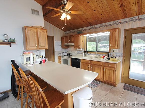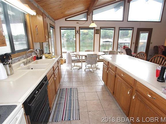 Enjoy one level living with this furnished three bedroom lake home. The open living area features a vaulted tongue and groove ceilings and a wall of windows to enjoy the cove view. 2 car attached garage and two well dock with lift. Cove location is good for swimming, boating, and fishing or just relaxing on the large deck and enjoy the pretty views. Recent upgrades include a NEW roof, some windows, electrical box, and 1500 gallon septic holding tank system. The dock is up to code, and the home is not in the flood plain! Ready for summer fun!
