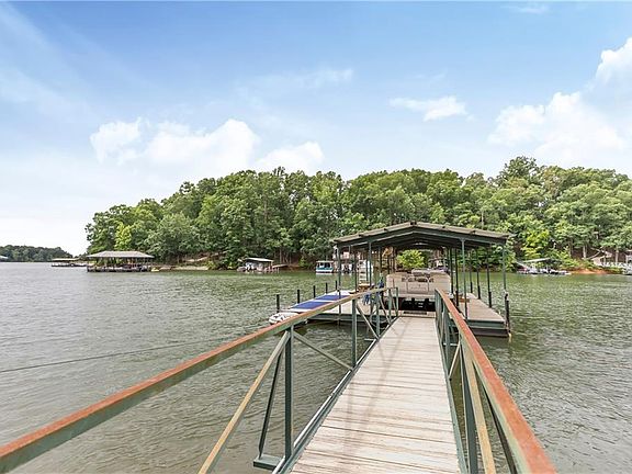 Beautiful and well built lake front cottage with PRIVATE BOAT RAMP and covered slip boat dock with boat lift! This lovely cottage was built in 2005. Welcome guests on your covered front porch with plenty of room for rocking chairs. The spacious living room has lots of natural light. Custom cabinetry in the kitchen includes a built in pantry and is adorned with quartz countertops and a full large appliance package passes with the sale including the smooth cooktop range, dishwasher, fridge plus the washer and dryer and a second fridge in the laundry room. A hightop breakfast bar can seat several in addition to the breakfast area adjacent. A half bath serves guests on the main level and the laundry room has plenty of storage. Sliding doors and tall windows help capture the lake views from the rear! Slumber on the upper level with a large master suite, two additional bedrooms and a hall full bath. The master bedroom has a trey ceiling and ceiling fan and a generous walk in closet. The master bath has tiled floor, a wide based double sink vanity, a garden tub, and a walk in tiled shower with glassed doors. The second and third bedrooms are lakeside and share a full bath with tiled floors and a shower tub combination with tiled walls. The interior colors and design are crisp and inviting. Entertaining will be a breeze here with so many spot to choose from. A lakeside screened porch includes an electric jennair margaritaville themed cook station. A HUGE lakeside patio is the perfect party spot with the focus being the outdoor fireplace. State restrictions on boat landings got you down? No worries here with your own private boat ramp which is also a great cart path to the lake. You will love the ideal location! Less than 5 minutes from I-85 at exit 11 and just around the corner from Broyles Landing which offers a beach, playground, picnic areas and boat ramps. Your location by water puts you a short ride away from Portman Marina. This quality built home would work nicely as a full time residence or as a second home and retreat. Seller can not close before July 31, 2020.