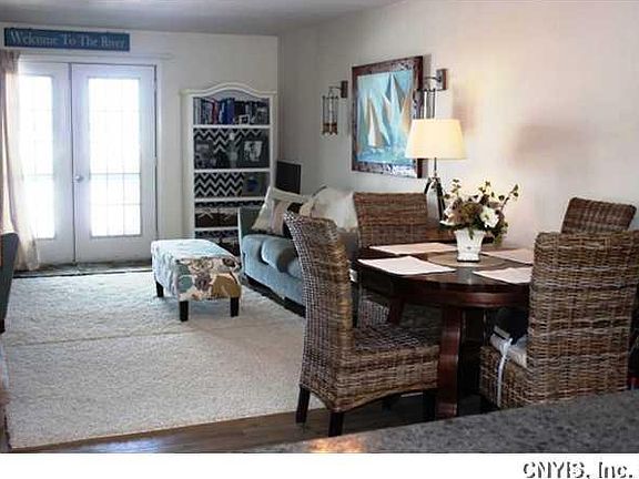 Also listed as a Townhouse "s309706" 2 Bedrooms each w/ full bath. 1/2 bath & laundry w/ energy efficient washer & dryer on first floor. All owners have use of association waterfront lot w/ 250' waterfront. Potential for renting a dock nearby. New flooring, electric radiant in- floor heat/ 1st floor, Green smart propane fireplace, 2nd flr- baseboard electric heat. Kitchen updated 2008, roof approx 2008, French Doors-Master BR & Living Room. Custom Kayak Rack. Furnishings & large portable air conditioner/ negotiable. Well maintained Yr round or vacation home. Views-French Creek & St Lawrence
