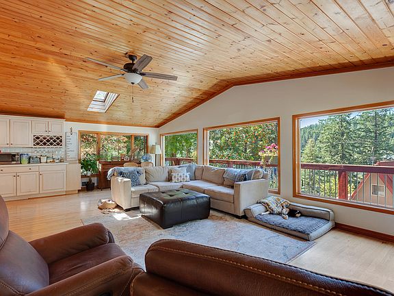 Private community waterfront with a DOCK SLIP right in beautiful Kidd Island Bay. Peeks of Coeur d Alene Lake across the street and boasting a spacious 2,700 SF home with 4 bedrooms, 2.5 baths, and OPEN Floor plan for enjoying year-round or seasonally. Abundant natural light with large windows, peeks of the lake and a fabulous DECK for enjoying BBQs, morning coffee and lake life. Take a rolling cooler down the road and hop on your boat at the Captain Kidd Island Dock Association on your Dock Slip! Room for a SHOP, plenty of parking, and great way to enjoy the lake life at an affordable price!