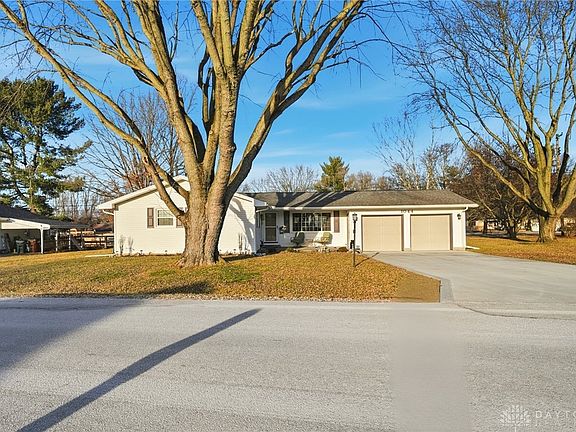 Well maintained ranch home located in desirable Xenia Township with no city taxes. This charming home offers 3 bedrooms and a beautifully remodeled full bath featuring a walk-in shower and convenient linen closet. The updated kitchen boasts Corian countertops, a stylish tile backsplash, pantry cabinet, pull-out drawers, updated hardware, and ample storage. All appliances stay, including washer and dryer. Redwood hardwood floors have been professionally refinished, and the entire interior has been freshly painted, creating a light, airy feel throughout. Enjoy peace of mind with a new heating and air conditioning system, professionally cleaned ductwork, a new electric panel, and upgraded LED recessed lighting. Newer vinyl replacement windows fill the home with natural light, and a new front door with leaded glass adds curb appeal.Additional updates include a roof (2011) , new gutters and downspouts, and a professionally finished and encapsulated crawlspace. The attached two-car garage features two garage door openers, a new concrete garage floor, and a new concrete driveway. Situated on a beautiful lot with mature trees and well-maintained landscaping, this home is just a short walk from Sara Lee Arnovitz Nature Preserve, located approximately 1/4 mile away. An aerial photo highlights the preserve’s proximity to the property.The third bedroom offers flexibility and could be used as a laundry room, pantry, or home office. This home is move-in ready!