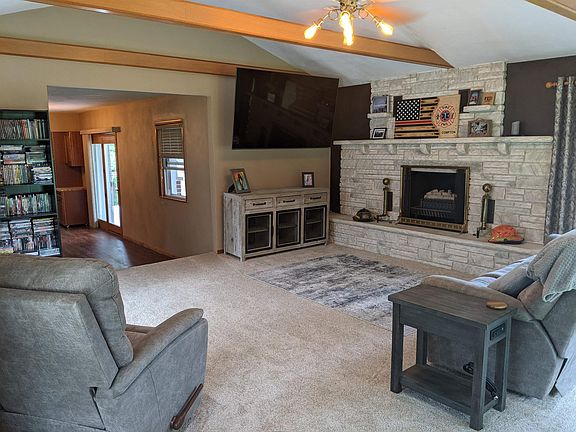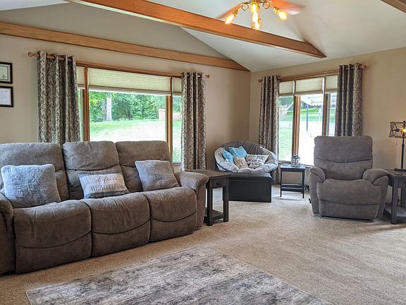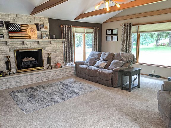 Almost an acre on the edge of town with so many extras! The entire house has been updated from top to bottom! Garage is 30' wide by 22' deep. Metal 14' x 10' shed would make a great She Shed, Playhouse or Craft/Hobby Shop. Additional sheds for all the pool toys, lawn equipment and wood shed. Plus two driveways gives you room for all the toys. 15' above ground pool. Roof new 2017. Appliances new 2017. Windows new 2018. Flooring new 2018. Carpet new 2019. HiEff washer and dryer new 2015. HiEff gas forced air new 2017. Central air new 2018. Ducts cleaned 2018. Main floor features vaulted living room, open to dining and kitchen, two bedrooms, full bath and lots of closets. Covered patio out the french doors off the kitchen/dining. Upstairs one large open room with closet and built in storage. Basement has large exercise or game room, half bath and laundry.