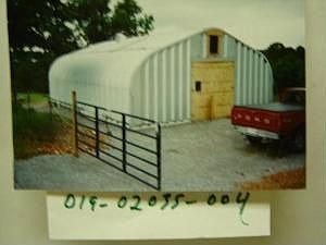 Age is unknown. Quanset Hut on 4 acres, nice pasture. Water, electric and septic to building.