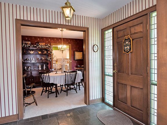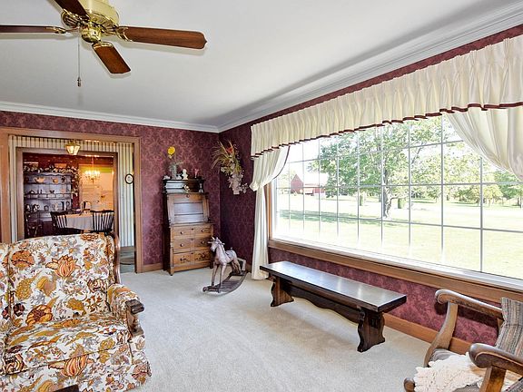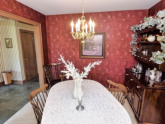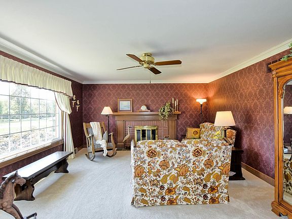 Welcome to this stunning brick ranch home on Evansville's sought-after westside, perfectly situated on a spacious 4-acre lot with a pole barn and in ground pool. This inviting property offers over 3292 sq ft of living space. As you enter the foyer, you'll notice the attention to detail including the slate flooring. The living room features a huge picture window, ceiling fan, and fireplace. To the right is the dining room with an opening to the living room and to the kitchen. The eat in kitchen features updated cabinets, vinyl flooring and a tiled backsplash. This convenient layout features 3 bedrooms and 2 full baths on the main level. The spacious primary suite is a true retreat with its own ensuite full bath, ensuring privacy and comfort.The finished walk-out basement adds even more living space, complete with a large family room with a fireplace open to a full kitchen with wrap around bar, patio doors lead to a large open patio with an automatic sunshade. Step outside and enjoy the updated landscaped backyard, which boasts a fenced-in pool area—perfect for relaxing or entertaining. The lower level also offers a fourth bedroom, an extra area ideal for a pool table or exercise equipment, and ample unfinished storage space. In addition to the home, this property includes a versatile pole barn, providing plenty of room to store your equipment, vehicles, or recreational "toys." New HVAC '21, Septic cleaned '21, carpet on main '19, Roof '17. This home truly has it all—spaciousness, comfort, and a range of amenities—all set in a peaceful, westside location. Don’t miss the opportunity to make this incredible property your own!