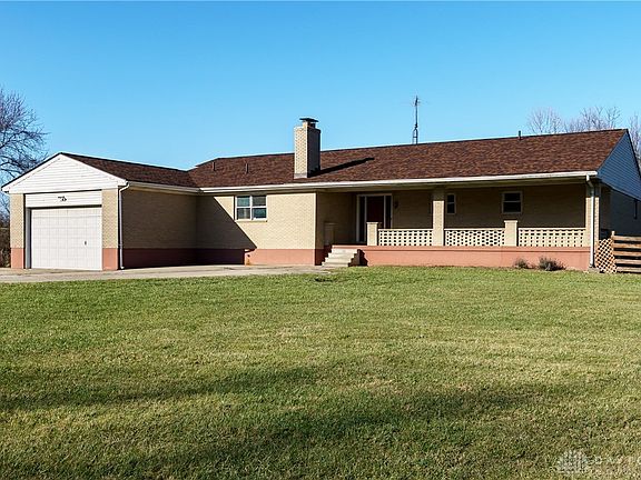 A rare find, 4-bedroom ranch home on over an acre with full basement! New roof just installed & interior freshly painted throughout, this home is move in ready. Easy access to 675 but private location. Covered front porch & rear patio & deck, this home is perfect for entertaining. The fenced in yard leaves plenty of space for kids & pets to play. The expansive concrete driveway offers extra parking for great for work trucks, boat or camper. Inside you will love the 20X19 kitchen with island & fireplace, the dining area is open to living room with view of private rear yard (new picture window scheduled to be installed). Off of the designated first floor laundry room is an office. 4 generous bedrooms & two baths located down hall. An additional 2,300 sq ft in the unfinished basement w/ fireplace & glass block windows could be finished. Updates include, Roof 2024, Well Pump 2022, Refrigerator 2024, Water Heater 2023, Range 2021, kitchen Sink 2021, Swing Set 2021. Qualifies for $0 Down USDA Loan.