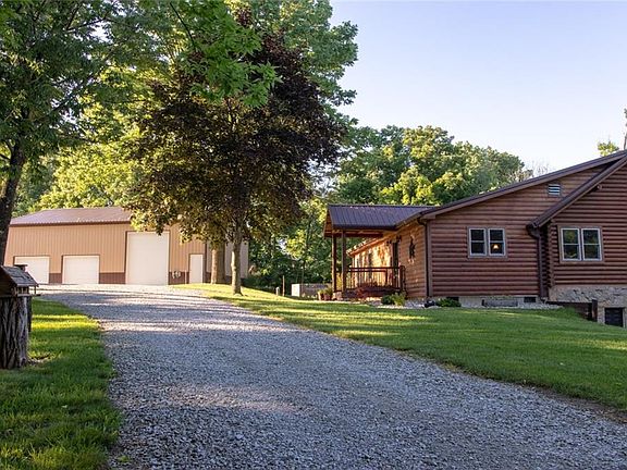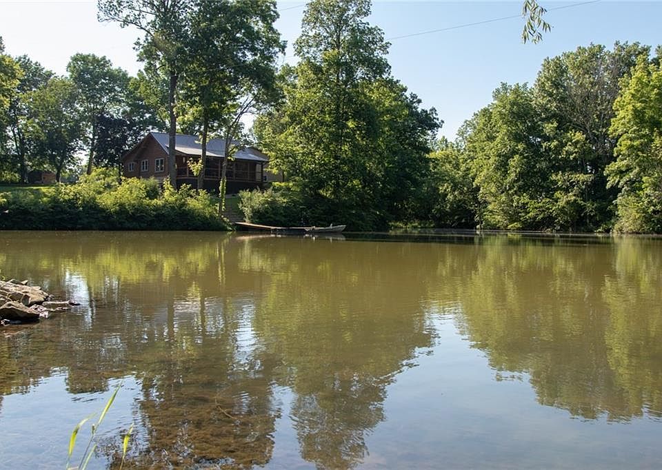 Log Cabin nestled in 8 Acres of landscaped hardwoods and overlooking your private Pond. This wildlife abundant property can be your new home! Cabin borders an Elk farm that graze daily behind property! You'll feel like like your in Alaska's wilderness! Property has completely been remodeled featuring all new plumbing, electrical, HVAC and duct work. Custom Amish built Rustic Hickory cabinets complemented with Sapphire Granite counter tops. New Pella double pane-double hung windows, solid Knotty pine doors. Walk in closets and custom barn sliding doors throughout. Sit on your new cedar wrapped front porch and admire the weeping willows, and quiet life. Pond is fully stocked with Big Catfish, Bass, Crappie & Bluegill! Plus 48X36 Pole Barn!