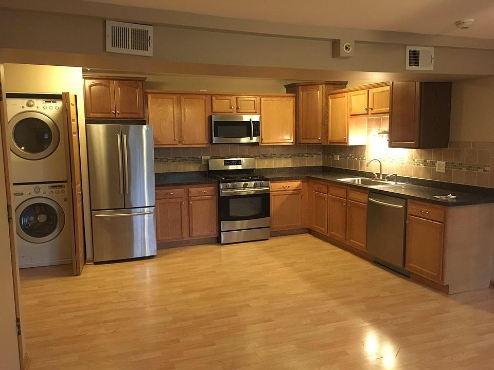 Beautiful, luxury 2 bedroom condo. Oversized kitchen featuring high cabinetry, stainless steel appliances. Washer & dryer in unit. Perfect location near major expressways, trains, & shopping. Includes heat, water, and gas. Minimum 2 year lease