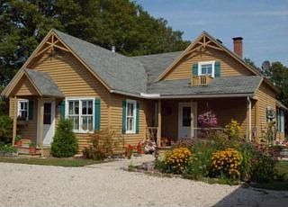 Delightful regardless of the season! Built around an original chink log cabin, this Nantucket inspired country home is surrounded by over nine acres of prairie gardens, fruit trees, stately hardwoods and pines, groomed trails, and a maze of rugged stone walls. The three bedroom, two bath home is very charming and perfectly maintained. The warm and inviting 1,600 square feet features a living room with brick fireplace, knotty pine wainscoting, and expansive windows. Gorgeous wood floors and bright, sunny windows grace the dining room that is perfect for either a large gathering of friends and family or an intimate dinner for two. Exposed logs and classic cabinetry highlight the updated country kitchen, located steps from the dining room. An oversized, detached two-car garage offers provides valuable storage space for vehicles as well as workspace and/or gardening space.