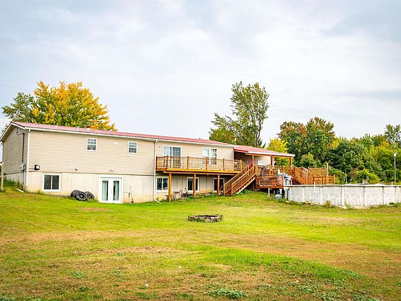 Country living plus LOTS of space! This unique 2.5 acre homestead with beautiful countryside views boasts 5 bedrooms (6th just needs to be completed if desired), 3 bathrooms and a spacious two-car attached garage. The upstairs has been freshly painted, and new Pergo flooring has been laid throughout. Are you worried about the bigger projects? These have been done for you! The owners installed a metal roof and new windows in 2021! The upstairs has central air and forced air propane heat, while the basement has an energy-efficient pellet stove. Although only the two bedrooms in the basement (yes, with egress windows!) are actually finished, the vast majority of the remaining 1400 sq ft is livable and being used as a home office and a dance practice area. Plus, there is more than ample storage! This space provides opportunity for a fantastic family room, office, exercise space, or even a combination of these. There is lots of room to make it your own! The on-demand hot water heater and primary suite whirlpool tub add the icing on the cake! Outside, the front yard has been lovingly landscaped and the backyard has a large multi-level deck, part of which is shaded, and a relaxing above-ground pool. With cable internet at the ready, this home is perfect for the family seeking many bedrooms, the retirees looking for everything they need on one level, or anyone seeking solace on their own plot of paradise with all the perks!