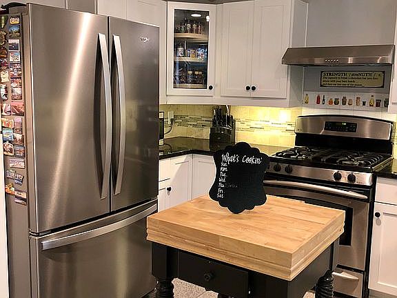 - Kitchen Features: Cabinets White, Breakfast Bar, Stone Counters, View to Family Room, Pantry Walk-in