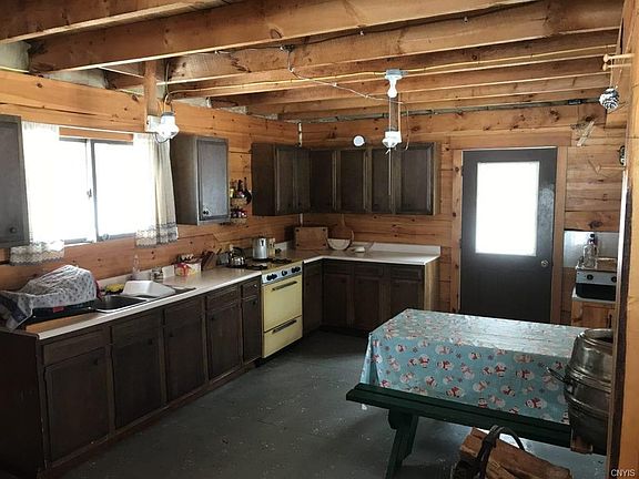 Log cabin has an open floor plan with plenty of space for you and your family and friends. Kitchen area, bar, living room and dining area. 2nd story of the log cabin is open space which is currently used as a sleeping area. There is a wonderful covered front porch for relaxing and enjoying your environment. The cabin is wired for a generator as well as propane lights, has a drilled well with a hand pump for water, and a wood stove for a heat source. There are also his and hers outhouse facilities. The cabin sits on over 12 acres of land with a gated, private drive. It is located on a private road. In the winter, it is possible to access but you will need a snowmobile unless you have a plow. The private road is not exceptionally long and would not be very difficult to keep cleared.