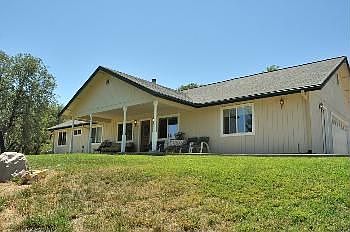 IDEAL RANCH property with contemporary newer single story home. Hard to find 4 bedroom home features a bonus office or multi purpose room. Great Room opens to the generous modern kitchen. Oversized dining area connects to the covered patios. Large master suite with perfect bath. Wonderful low maintenance concrete patios and secluded spa area. ALL USEABLE 5 ACRES is ideal for horses and/or gardening. Other bonuses included: 50kwgenerator. Oak flooring. Central Vac. Move in ready!