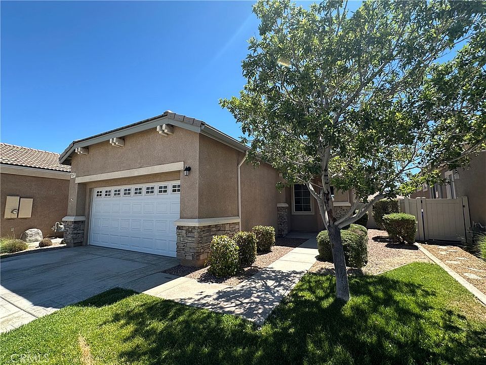 Welcome to this beautiful Aspen Model located in the desirable 55+ gated community in Solera of Apple Valley. This meticulously maintained home offers a charming and private setting for peaceful living. Step inside and be greeted by an open floor plan that allows for seamless flow and easy entertaining. The spacious living area is adorned with ceiling fans throughout, ensuring comfort on those warm desert days. The kitchen is a cook's dream, offering plenty of cabinetry and counter space. Whether you love to whip up delicious meals or simply enjoy the art of cooking, this kitchen has everything you need. In addition, there is an in-house laundry room equipped with a soaking sink, counter space, and cabinetry. It's the perfect space for handling laundry tasks conveniently and efficiently. The two bedrooms and two baths provide ample space for both residents and guests. Each room is thoughtfully designed with attention to detail. Outside, you'll find a beautifully landscaped front and backyard that offers a tranquil retreat. It's the perfect space to enjoy evenings and soak in the beauty of our desert oasis. Don't miss the opportunity to make this home yours. Schedule a showing today and experience the charm and serenity of Solera of Apple Valley. All information deemed reliable, but not verified. Buyer is advised to satisfy themselves by rights of investigation and verification.