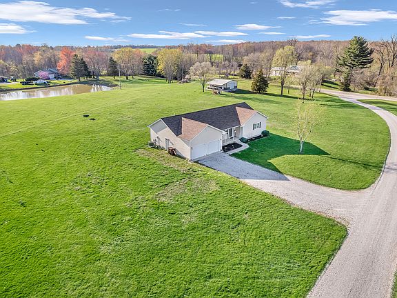 Just minutes from I-70 and located in peaceful Maple Grove Estates, this move-in ready home sits on 2.44 acres. It boasts 9 feet ceilings with an open concept kitchen, dining room, and living area. The 3 bedroom, 2 bathroom home has modern updates throughout including white trim and contemporary kitchen cabinets. The primary bedroom has an en suite with his/her closets. Along with an attached 2-car garage, there is also a 24X30 outbuilding on the property. The perimeter of the home has established low maintenance landscaping. The furnace and heat pump are one year old. This property also includes buried electric fencing for dog owners.
