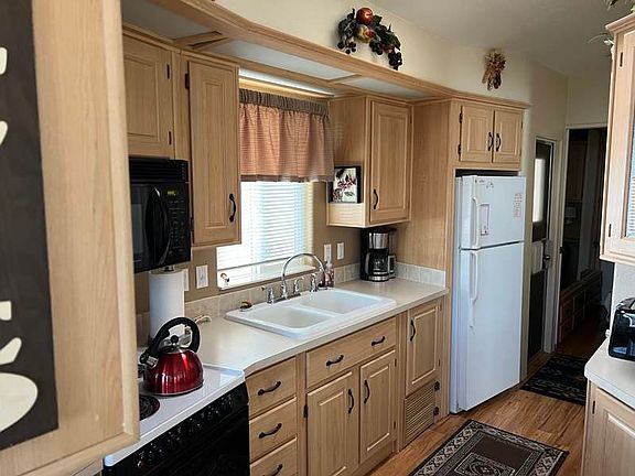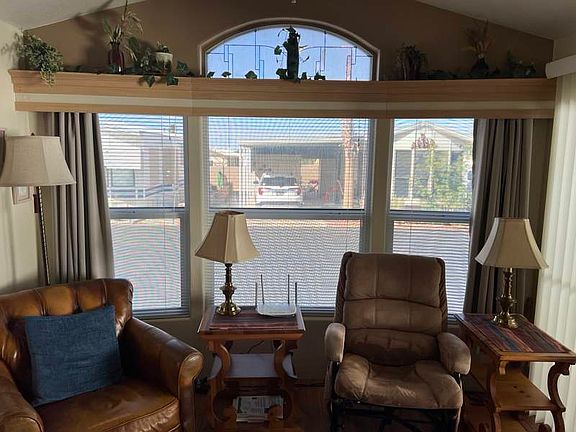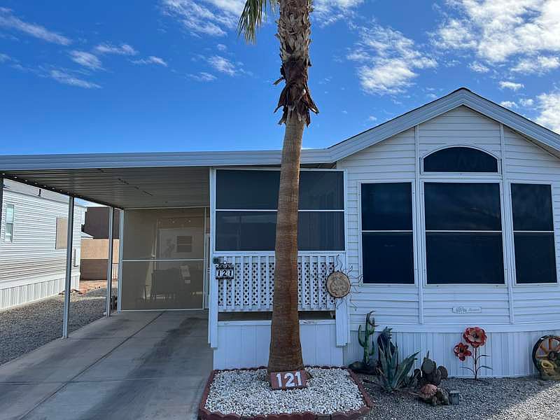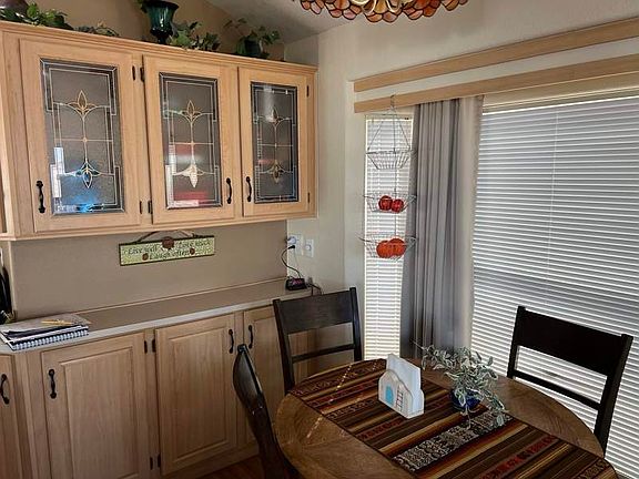 This home in Las Quintas Resort features a large outdoor covered/screened in patio and is completely furnished inside and out. This home has lots of built-ins, including a hutch,, pantry, night stands, and dresser. It is in a great location. This home features a large shed with a washer and dryer, and lots of storage. Call today and schedule a tour!