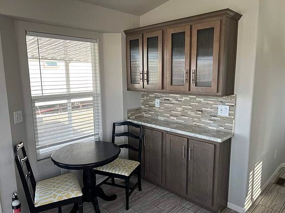 This brand new park model is a must-see. There is no wasted space in this lovely home. This home is perfect for your home away from home or for a full-time stay. The community offers so much to do you'll never want to leave. The property comes with covered parking, central air, heat pump, and ample storage throughout the home. Many upgrades are built in: Glass tiled backsplash in the kitchen, storage closet, full pantry, built in hutch in dining nook, and in thew bedroom there is a built in dresser and nightstands. Don't miss your opportunity to see this property and community for yourself.We make it easy to buy a new home. Trade in your current park model, or fifth wheel towards the purchase of a new home. This home includes ONE YEAR free rent! Or, if you chose, you can lock the market rent in for life. See office for specific details. Call today to schedule a tour!