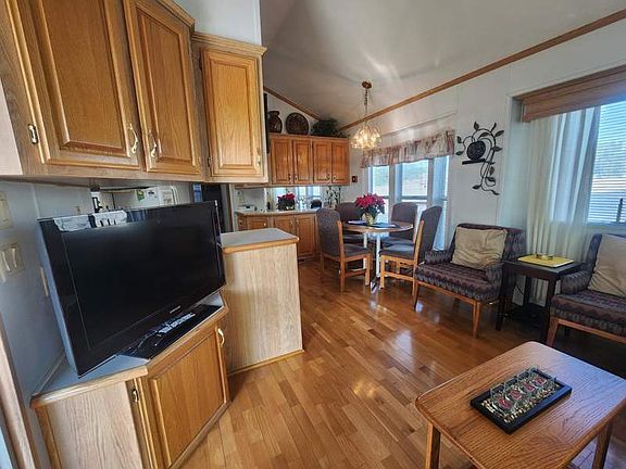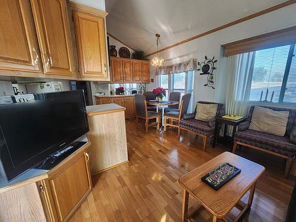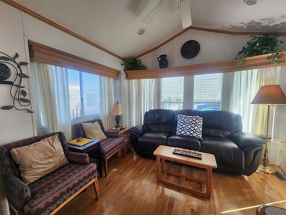 This Beautiful 1999 1 bed/ 1 bath furnished home has soo many amazing features, it is within walking distance to the clubhouse and other amenities. The upgraded flooring, nice cabinetry, and kitchen make this home an excellent place to call home. You can enjoy your mornings or evenings in the amazing loveseat swing or out in the cozy patio. This home also has a washer located in the bedroom of the home. Make an appointment today to view this gorgeous home!
