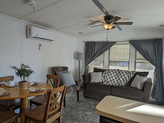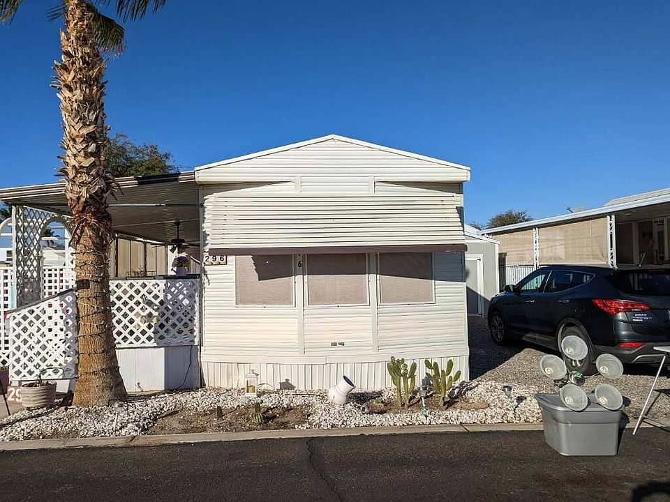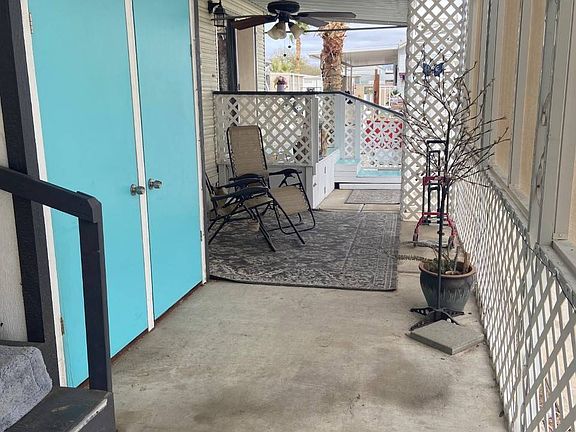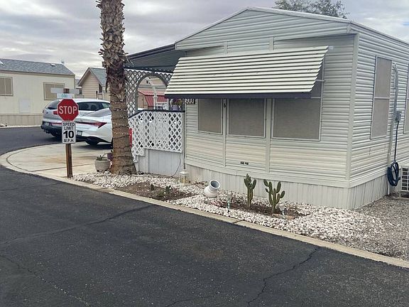 Las Quintas #296 10442 N Frontage Road Yuma AZ 85365 55+ Active adult park Monthly lot rent $400 Includes: water, sewer, garbage 1987 Flamingo 1 bedroom, 1 bath Fully furnished New vinal floors Heat pump Kitchen has ample cupboard space Gas stove New refrigerator Outside privacy area for relaxing Large bedroom with queen bed and flat screen tv Living room with flat screen tv Dining area Shed for extra storage
