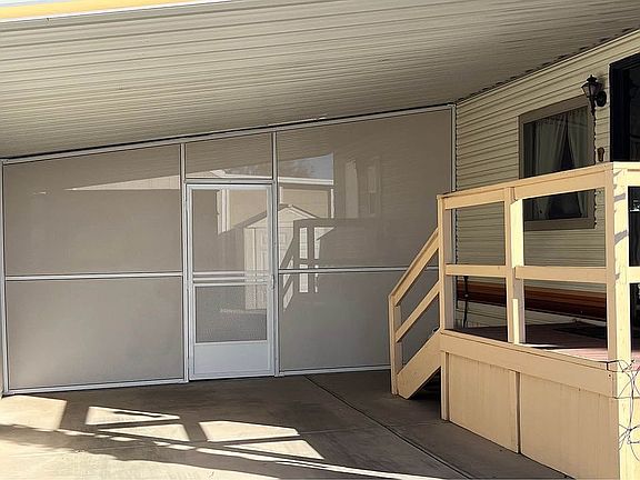 Fleetwood Park Model 444 ft of living space in Las Quintas Oasis RV Resort. 1 large bedroom which will accommodate a king bed, gorgeous flooring, new RO System, New Roof Covered Parking with Private Screen Room and Barbecue area and a wonderful shed.