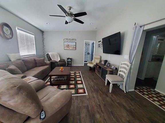 The charming 2019 1 Bed /2 Bath Cavco Park Model home sits on a beautiful lot with a patio and shed. This adorable house gives you everything you need to call this place your home. It features high vaulted ceilings throughout, recess lighting and white wooden cabinets that truly add character and charm. This Beautiful home offers an open Kitchen, cozy Bedroom with a queen size bed, beautiful bathroom with a stall shower. this home also has an add on addition with a full-size bathroom that has a washer/dryer combo and a gorgeous living room with a sleeper sofa making it perfect to have guests stay over and have their own private area. The light-colored countertops, beautiful white cabinets and Stainless-steel appliances create a very open and airy feel that you are sure to love. This home is a MUST SEE!!! Are you ready to purchase a home in a fun filled Cobblestone Resort with all the amenities and activities that will keep you busy and entertained year-round? Are you that person? If you said yes to all these questions then this adorable, affordable home is perfect for you. We are a 55+ gated community with many amenities and activities.