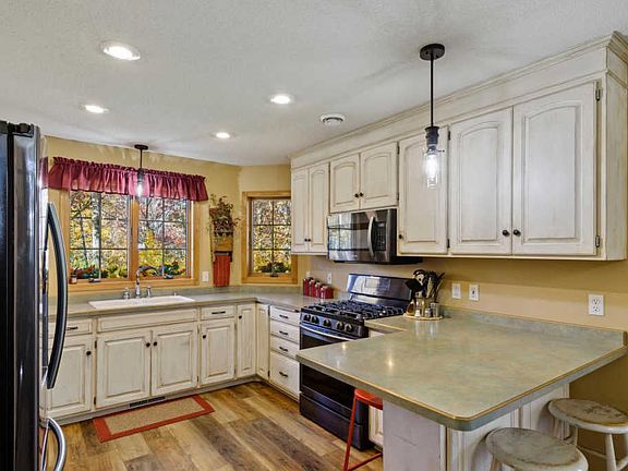 This house has all the perks and is ready for you to move in! Open and spacious feel throughout the entire house. 3 large upper bedrooms all have walk in closets. The Master has a private en suite with heated tile floor, tile walk in shower and large walk in closet. The upper living room walks out to a large maintenance free deck, overlooking a gorgeous and private backyard. The main level boasts of a large entry and kitchen with custom painted cabinets, newer black SS appl. new laminate flooring and side deck with beautiful views of a perennial garden, perfect for BBQing on! The third level hosts a large family room with a gas stone fireplace, a LL bedroom, 3/4 bath, laundry room(with storage!) and a walk out to a screen porch with a view! The fourth level is finished with an egress. A new paver patio and firepit area and an above ground pool makes hanging out at home a must! The yard and landscaping are immaculate with a watering system to all potted plants, say what? Come See!