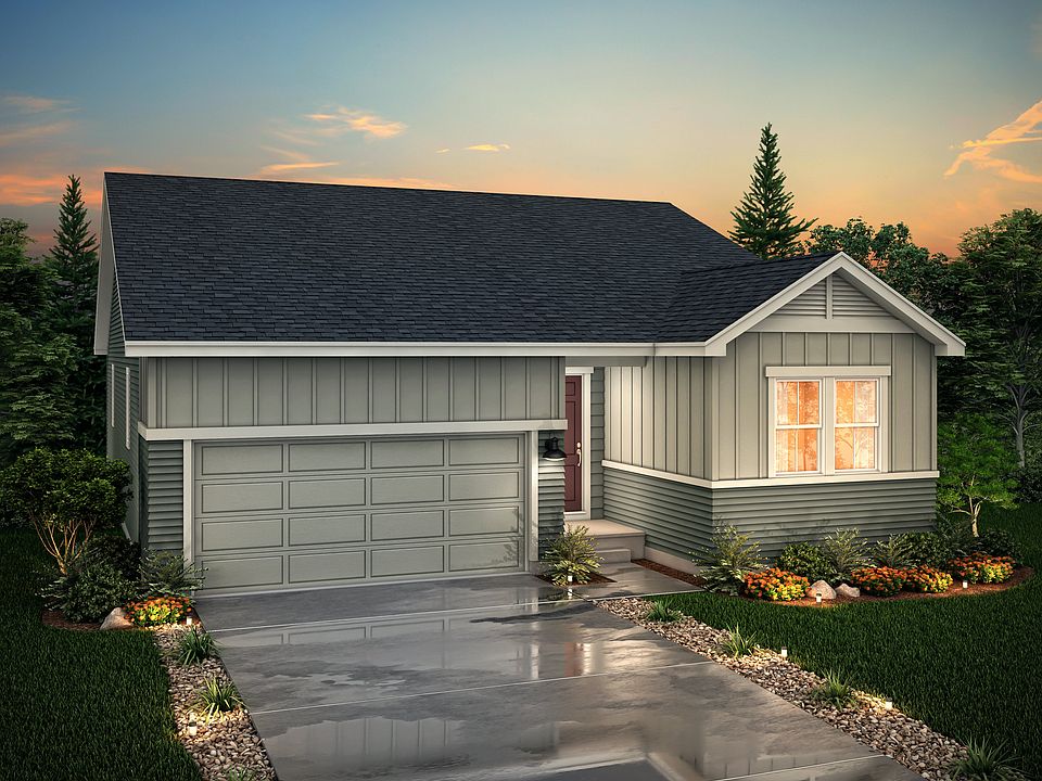 Upon entering the smartly designed Palisade plan, you'll find two secondary bedrooms off the foyer with access to a full hall bath. Beyond the foyer, an inviting kitchen with a center island overlooks an open-concept great room and dining area with access to the backyard-perfect for entertaining. Tucked in its own corner of the home, a secluded primary suite features an attached bath and spacious walk-in closet. Completing the home, a laundry room is conveniently located in the center of the floor plan. Options may include: ? 3-bay garage ? Patio/covered patio ? Unfinished basement ? Finished basement with recreation room, bedroom and bathroom ? Expanded kitchen ? Study in lieu of secondary bedroom adjacent to kitchen