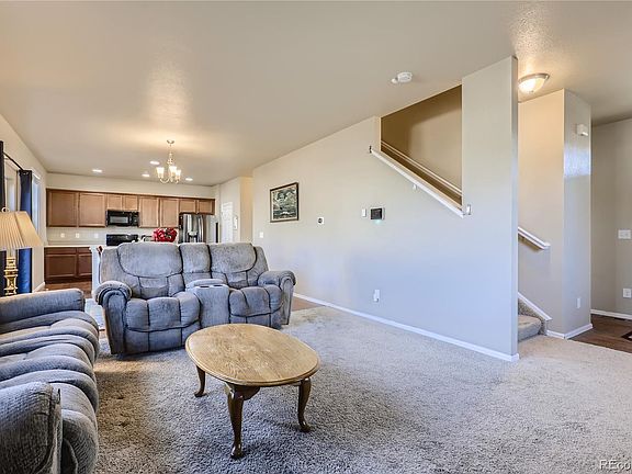 Welcome Home to this 4 bedroom 3 bathroom 2 story home located in the Turnberry neighborhood in Commerce City. This home is carefully placed facing west with a playground very close by. When you enter, there is a large foyer with an entry to the 1/2 bathroom and living room. The living room is an open-concept space to the dining room and kitchen. This room is flooded with natural light beaming from the large double-pane windows. The dining room is big enough for a table of 8 with access through the sliding glass doors to the backyard. The kitchen has an island with lots of cabinet space. There also is a large walk-in pantry plus all appliances included. Just off the kitchen is access to the 2-car garage and the unfinished basement with rough-in. (Stand-alone freezer in the basement included) Upstairs you find a large hallway with access to all 4 bedrooms and the laundry room. All bedrooms have large walk-in closets. The primary bedroom is very spacious with an ensuite bathroom with dual sinks, a toilet, and a shower. Don't miss this opportunity to call this house your home.
