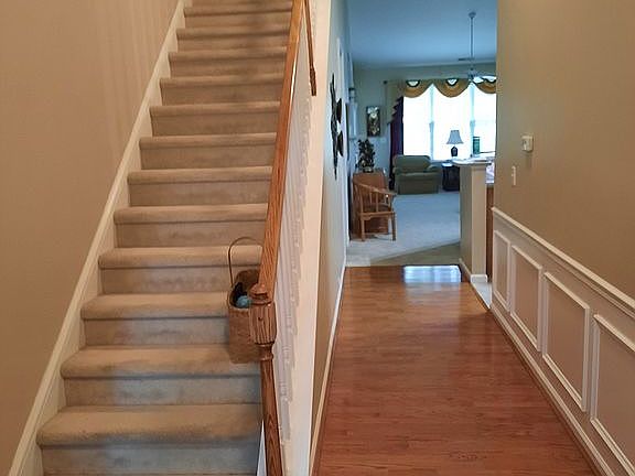 A story and a half with master, master bath and walkin closet, 2nd bedroom and half bath on the first floor. First floor has open concept kitchen, dining and living room. One car garage. Laundry in kitchen. Screened porch. Second floor with a large bedroom, jack and jill full bath and a den, along with storage area. Community pool.