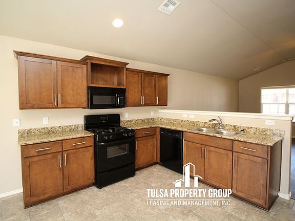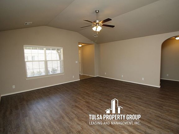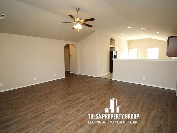 Attractive Home in Jenks school district!Three Bedroom- Two Bath- Two Car garage- Open floor plan- Freshly Painted- New Flooring- Spacious kitchen with a dining area- Kitchen equipped with granite counters, pantry, oven, microwave, refrigerator, and dishwasher- Each of the 3 bedrooms are an excellent size- Fenced in back yard that backs up to greenbelt- Community pool, playground, splash pad, and basketball court.