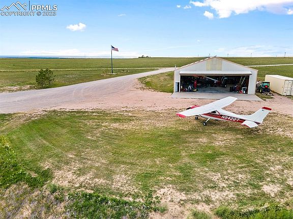 Gorgeous 360 degree views, almost 60 acres, and your own private hangar with 2400' runway await you for this pilot's dream property. This runway is both FAA approved and there is a county use by review permit in place. The 60x48 steel frame hangar with bifold door can also serve as a shop or a barn. This property is fenced on three sides and has ample hay production in the growing season. The open concept home has room to add on for a growing family with a permitted, framed, and stubbed in walk out basement. This home also boasts Siberian birch hardwood floors on the main level, a Generac back up generator, and AC. Please walk the property and only drive on driveway. Please do not drive on runway. Adjudicated water rights are available!