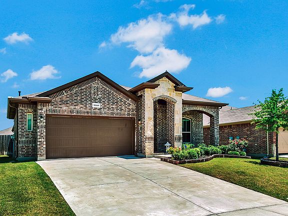 Located in the highly sought after community of Tehama Ridge this gorgeous DR Horton home has fantastic curb appeal with a covered front porch and brick flower beds. The spacious open family room offers floating custom built-ins and a gas fireplace, inviting island kitchen with granite countertops, gas cooktop, stainless steel appliances and a spacious breakfast area. Enjoy the convenience of the large utility and pantry. Custom colors throughout. The private Master Suite with double vanities, garden tub, separate shower and large walk-in closet. Two additional bedrooms with a full bath in between. Garage offers plentiful storage shelving. The house is surge protected, has a security system with front door camera, furnace re-hung and proper 18 gauge duct work installed. Seller is leaving the washer, dryer and stainless steel kitchen refrigerator. Located minutes from Alliance shopping center and major highways in the coveted Northwest ISD. Amenities include community pool, clubhouse, playgrounds, walking trails and parks.