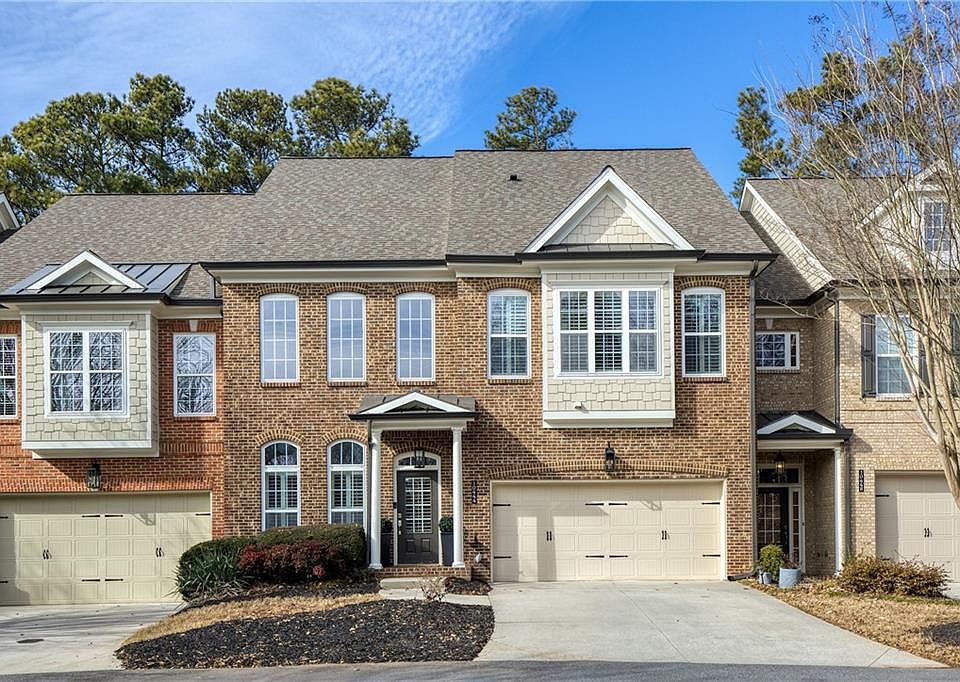 Excellent Townhome in The Park at Haynes Manor! A gated community located in Johns Creek, 30022, conveniently minutes away from GA 400, Newtown Park, the Greenway, shopping, and restaurants! With just painted exterior and new gutters, this pristine brick home welcomes you with a 2 story entry, hardwood floors throughout both levels and the primary suite on the main floor with walk-in closet. Main floor features a separate dining room and kitchen open to the family room. Notable features in the kitchen are stained cabinetry, new hardware, double oven, gas cooktop, granite countertops, new stainless refrigerator, new stainless dishwasher, new faucet and new disposal. The family room features custom wood built-in cabinetry and shelves, new hardware, and a beautiful wood fireplace mantle with painted brick and gas logs. The patio is accessible from the family room and opens up to a level fenced back yard featuring turf. The garage features a new epoxy-finished floor, an EV charging station, new shelving and its entry is main level. Plantation shutters throughout. Upstairs features a beautiful laundry room with cabinetry and a sink, 3 LARGE bedrooms, 2 full baths, generous closets, linen closet and a spacious loft area that can be used as another family room or office. Lots of natural daylight throughout! A wonderful opportunity to own in a great location!