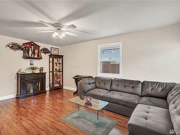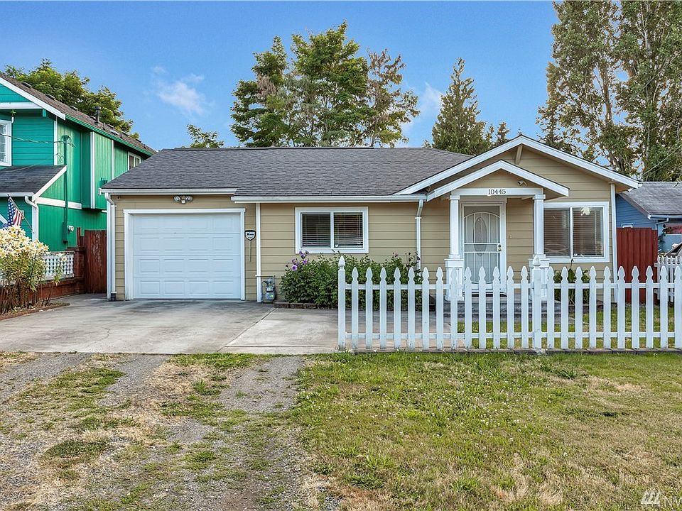 Cozy remodeled rambler with white picket fence and 1 car attached garage. Effective year built 2012! 3 bedrooms, 1.5 baths, 1,390sf. Extensive laminate flooring. Double pane windows. Mini-split heating & cooling. Inviting light-filled formal living room with ceiling fan. Impressive kitchen is a chef's delight with beautiful granite countertops, breakfast bar, and stainless steel appliances. Spacious family room with slider to the covered deck for extended outdoor activities. Private fully fenced backyard has extra large patio, garden space, and huge shed. Less than 3 minute walk to bus stop. Approx. 15 minutes to Seatac Airport.